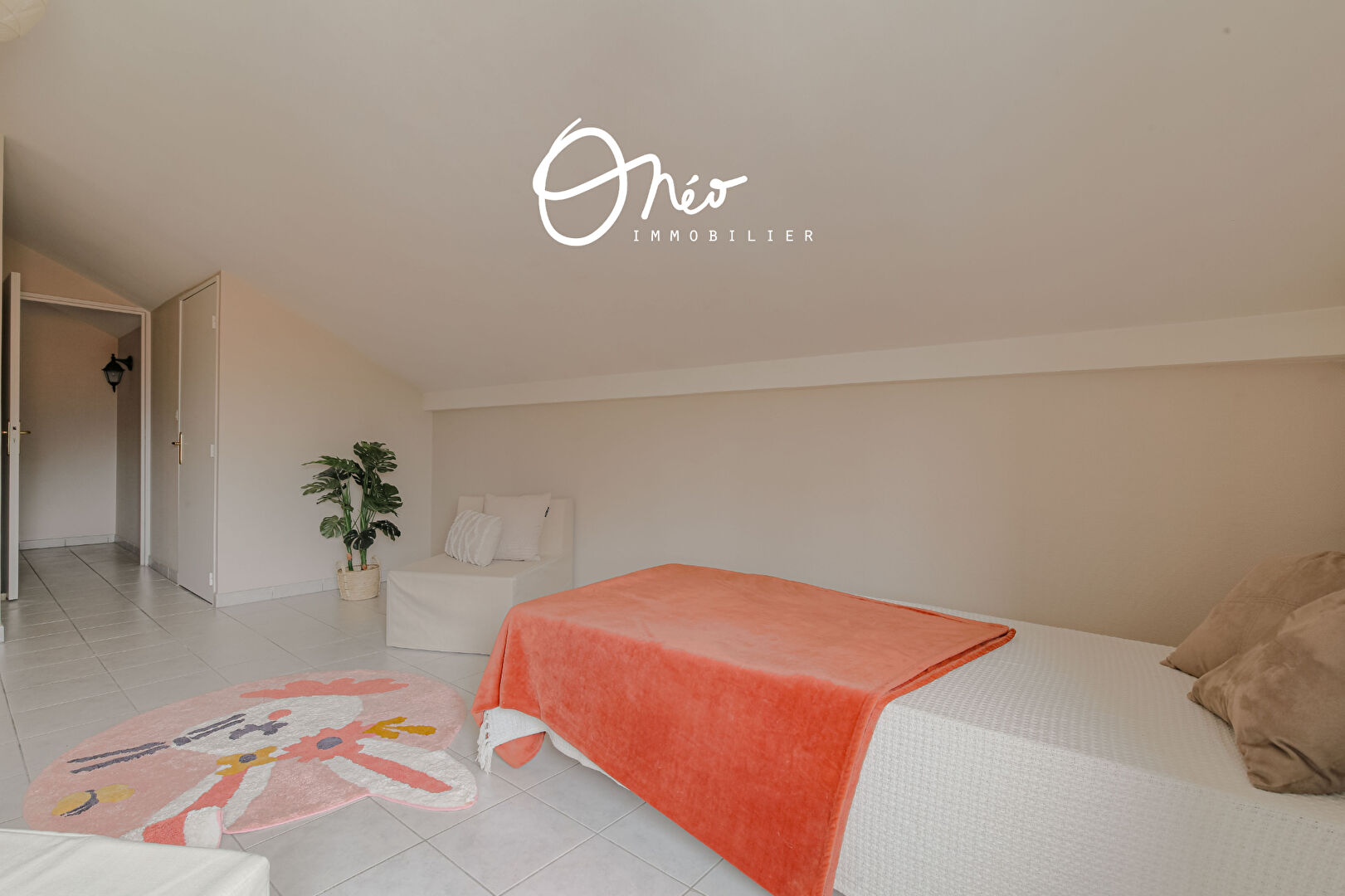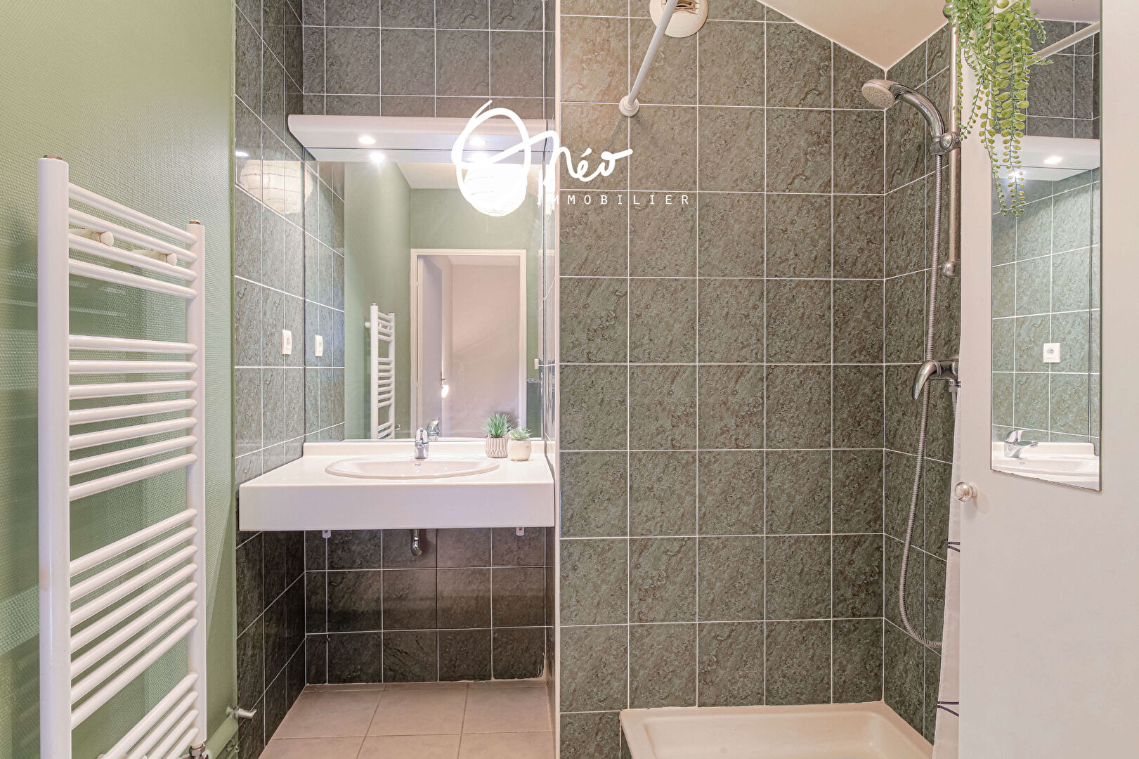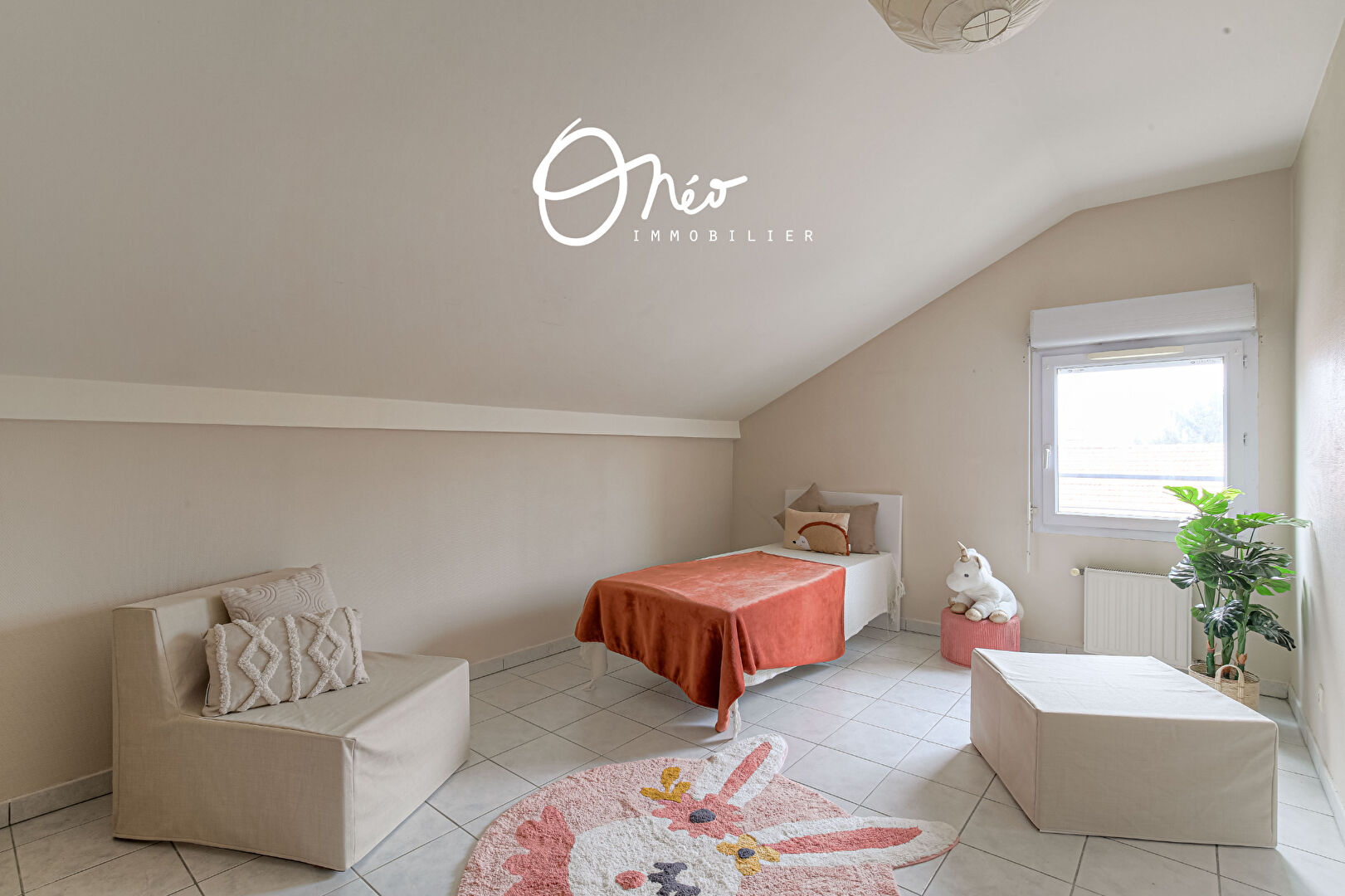 A l’étage, vous découvrirez une seconde chambre de 17,40 m2 sous pente (12,95 m2 carrez), d’une seconde salle d’eau avec douche, sèche-serviette et WC.