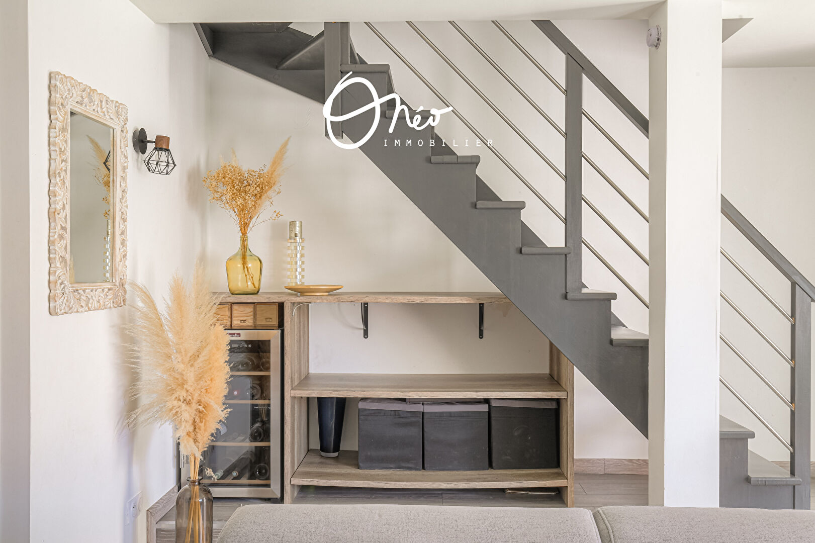 Nouvelle exclusivité Onéo immobilier – Coup de coeur pour « GABY », une jolie maison de village 4 pièces de 120 m2 entièrement rénovée avec goût profitant d’une belle cour privative intérieur de 45 m2 au calme complet et de deux stationnements privatifs, le tout idéalement située dans le coeur du village de Mions.