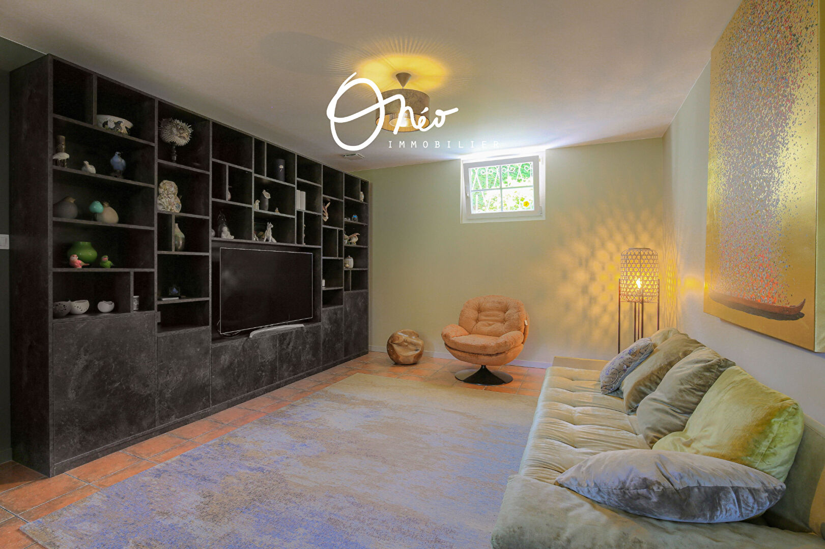 – De plain-pied, d’une très belle pièce de vie avec sa cuisine toute équipée et son espace dinatoire de 31 m2 ouvrant sur le jardin, d’une belle bibliothèque semi-ouverte de 26 m2 ainsi que d’un salon cosy et feutré de 32 m2 pensé actuellement en salle TV.