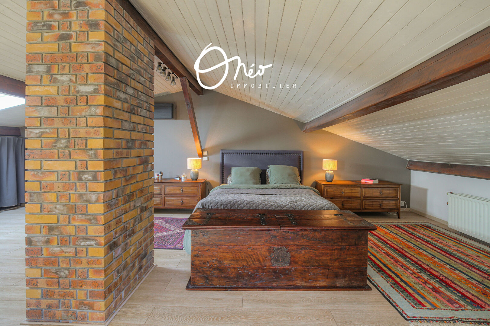 – Au dernier niveau, vous tomberez sous le charme des combles qui ont été entièrement aménagée en un espace parental de 80 m2 de choix : poutres apparentes, fenêtres de toit avec volets roulants motorisés de qualité, climatisation réversible …