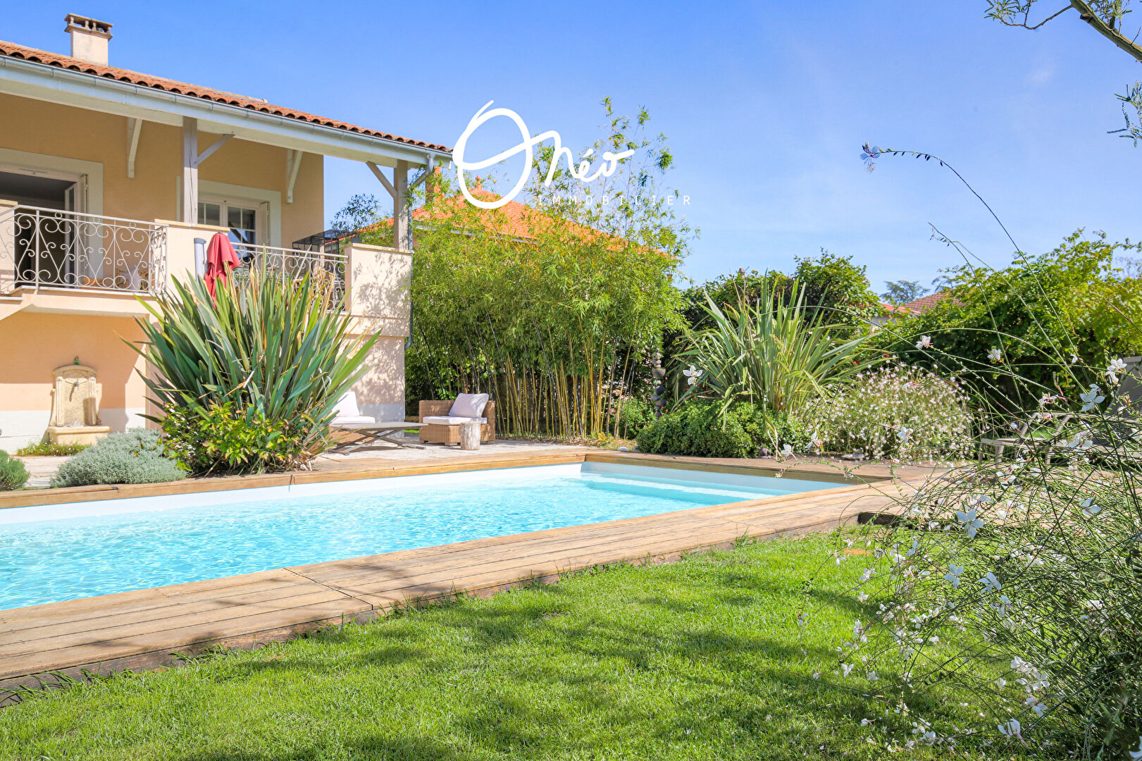Nouvelle exclusivité Onéo immobilier – RARE ! Idéalement située dans l’hyper coeur village de Mions, au pied de toutes les commodités du centre (halle du marché, place du village, commerces, écoles et transports), c’est à l’entrée d’un agréable environnement résidentiel de choix que vous découvrirez « SAUGE », une superbe bâtisse de 1960 au charme de l’ancien rénové avec goût.
