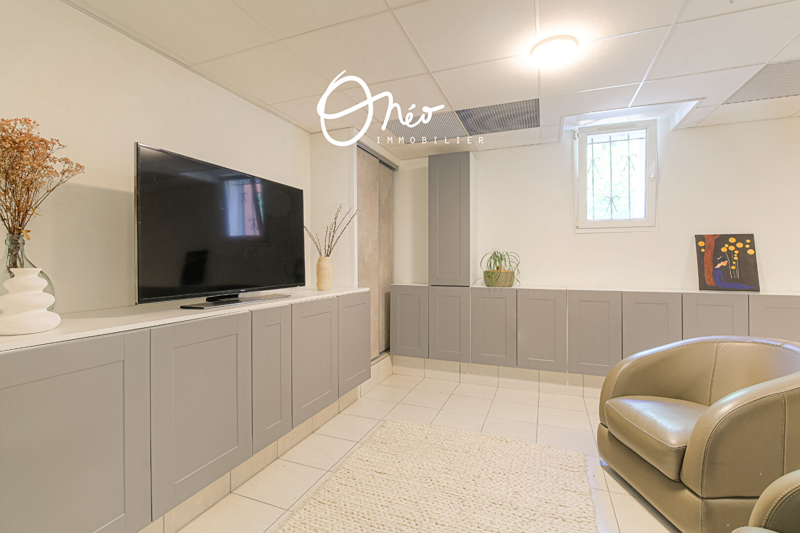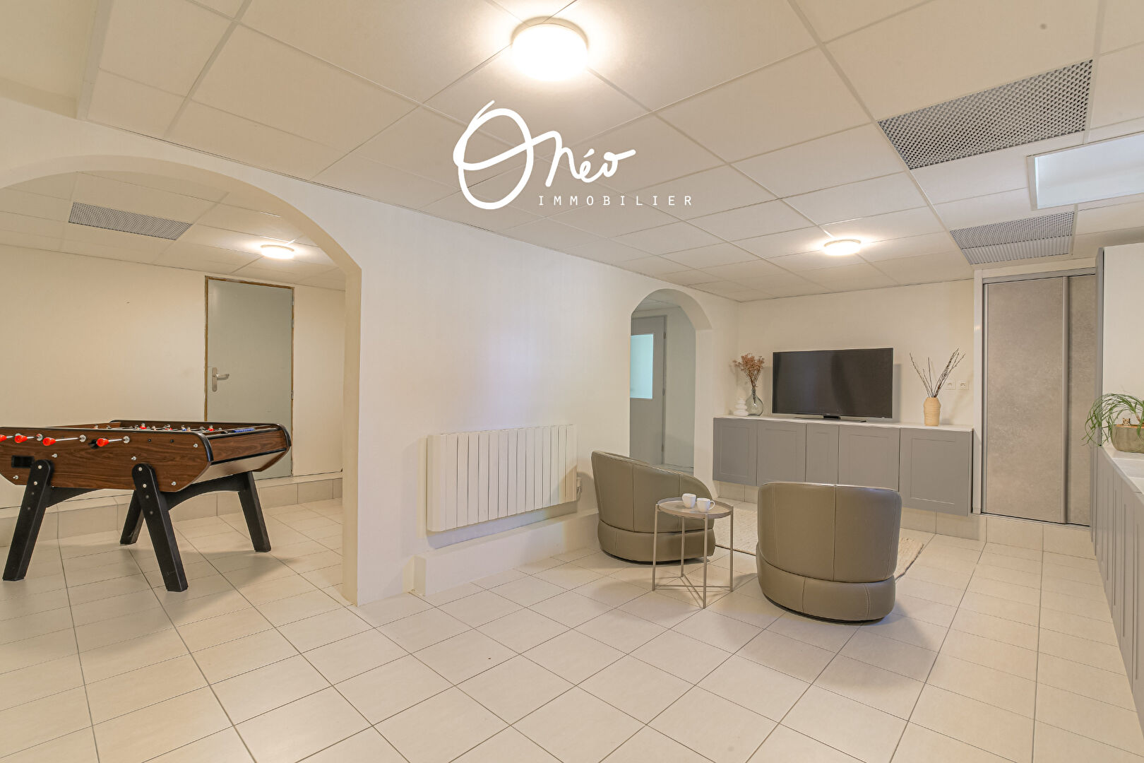 Au demi-niveau inférieur, vous accèderez à une belle pièce de 40 m2 idéale pour salle de jeux (billard, …), cinéma / TV, ou de travail au calme desservant une 4ème chambre de 11 m2 avec sa salle d’eau, idéale pour recevoir vos proches et leur offrir un espace indépendant confortable.