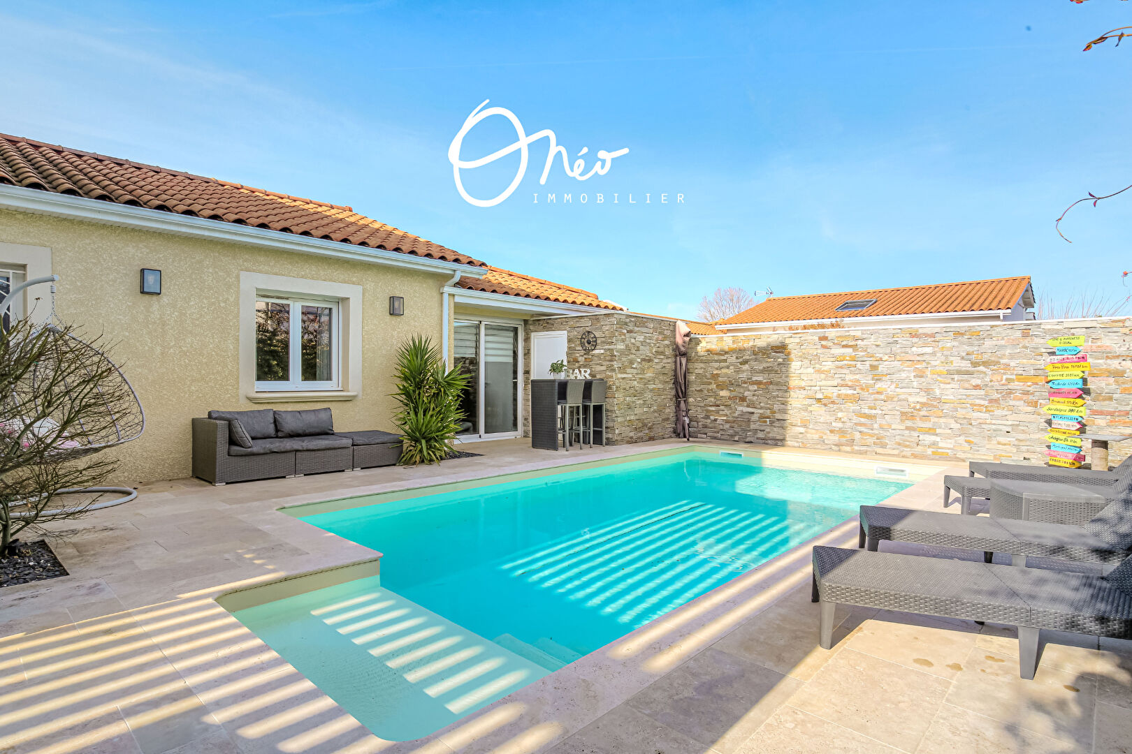 Nouvelle exclusivité Onéo immobilier – Rare à Mions ! C’est au coeur du recherché quartier de Germain Fumeux, au calme complet, que vous découvrirez « LANALY », une SUPERBE VILLA 7 pièces de 165 m2 offrant également UN STUDIO INDÉPENDANT de 26 m2 ainsi que de très BELLES PRESTATIONS le tout implanté sur sa parcelle de 673 m2 avec piscine.